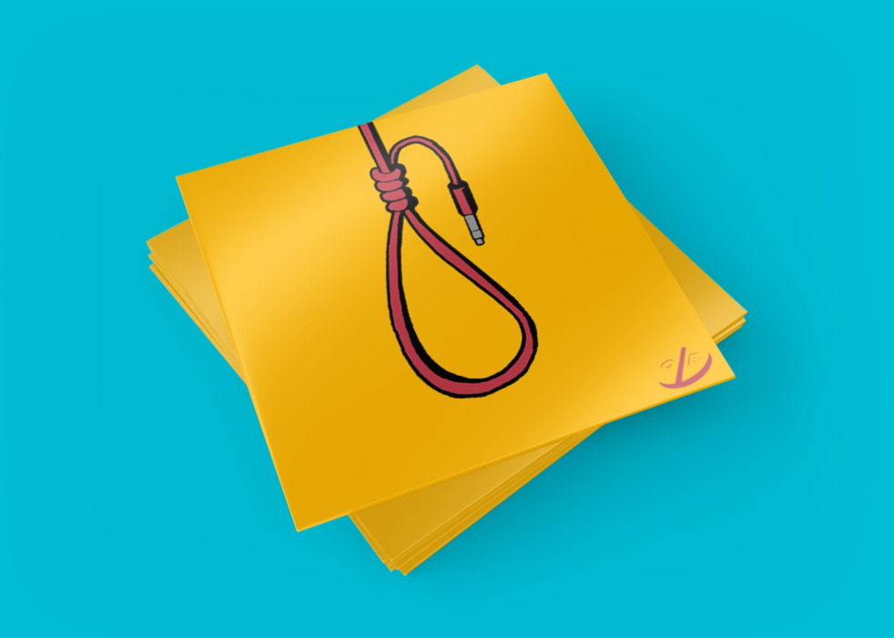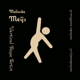 A business card that, when moved around quickly over it’s central axe, wil give the illusion the dancer is on the rope/logo